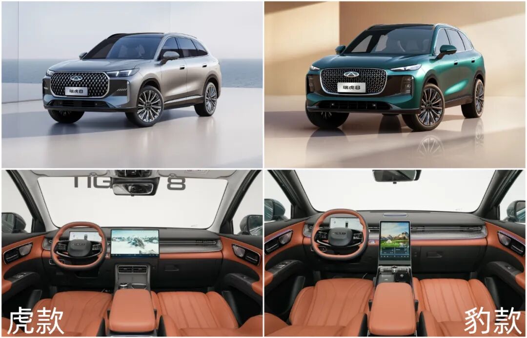 全新瑞虎8也开启了预售,4款配置的预售价为10.59-13.59万元。本次新车带来了两种外观:豹款车型的前格栅内部采用不规则的网格设计,配备黑化处理的分体式矩阵LED车灯;虎款车型采用一体式前大灯,搭配多边形“大嘴”中网,下方雾灯区域以斜线条勾勒并加入镀铬装饰。车尾换装全新样式的贯穿式尾灯,下包围分别采用隐藏式排气布局和双边共两出式排气装饰,形成细节差异。