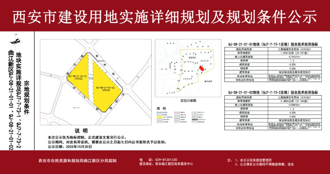 今日,曲江二期2宗共计约61.265亩住宅用地发布用地实施详细规划及规划条件公示。