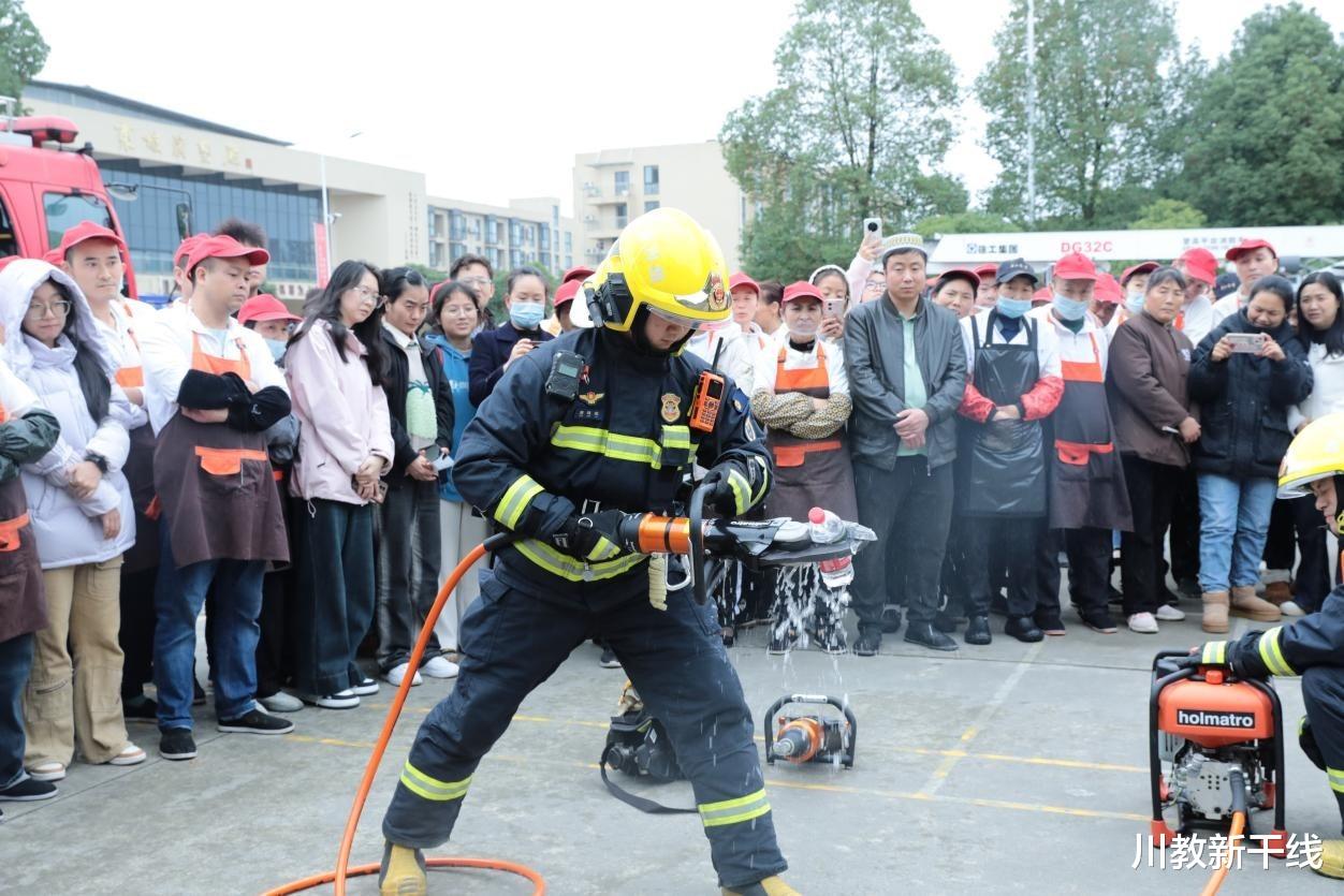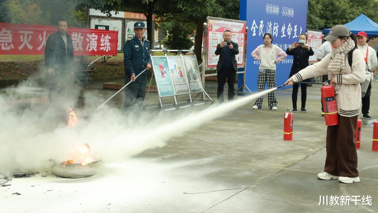 为全面提升师生消防安全意识,夯实校园消防安全基础,近日,四川工商学院联合属地消防救援部门在两校区开展了2025年消防宣传月活动。眉山市东坡区崇礼镇政府专职消防救援站、成都市郫都区团结政府专职消防救援站领导和消防员,学校办公室(党委保卫部)、学工部相关人员,各单位教职工兼职安全员,图书馆全体工作人员,各学院实验室管理员,各学院各行政班级学生兼职安全员,后勤服务公司行政管理人员、下属部门兼职安全员,以及全体食堂员工、保洁员、水电维修人员、学生公寓及楼宇管理员、保安员等工勤人员参加了活动。