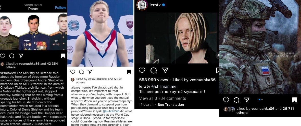 不过,乌克兰媒体在深挖之后发现,维斯尼娜的反战主张可能并不是她内心的真实想法,因为他们发现维斯尼娜在网上给支持战争的帖子点赞,她还曾给一篇歌颂俄罗斯士兵在乌克兰英勇作战的帖子点赞。