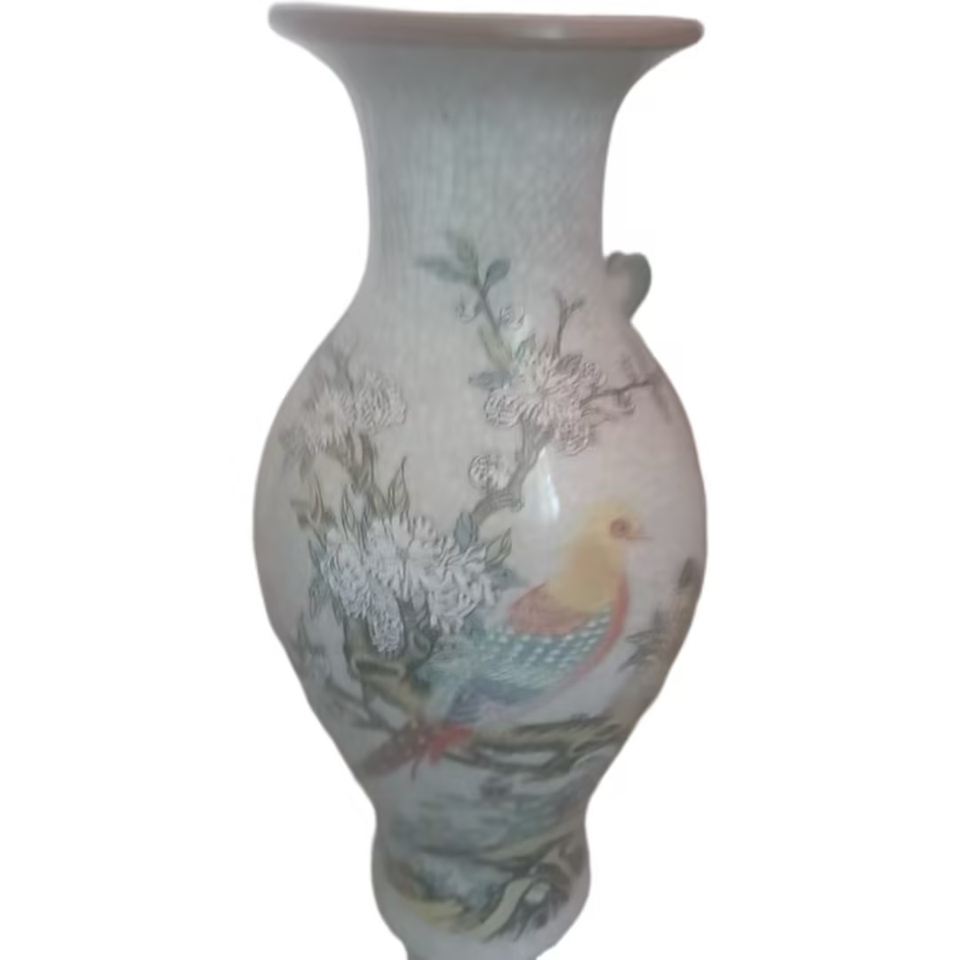 留白的 “意境”:瓶身仅绘 “一枝花鸟”,其余用哥釉开片填充,是国画 “留白” 的瓷艺化,符合文人 “以少胜多” 的审美。