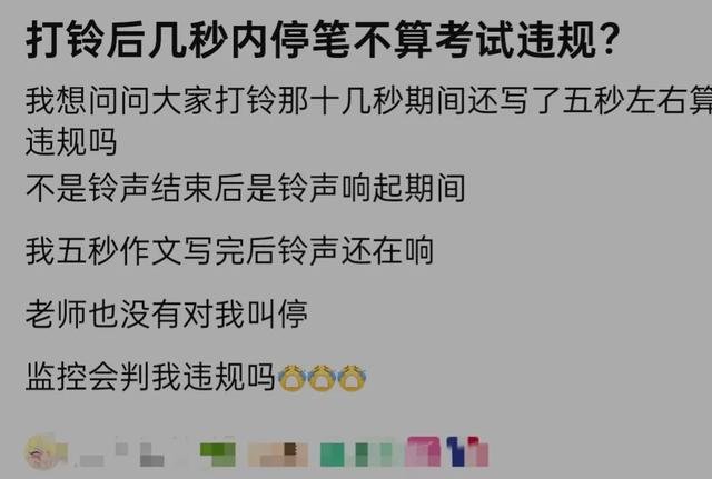上面这位学生也表示,自己在铃响后只写了5秒,而是老师没有发现并制止,现在在担心成绩是否有效!