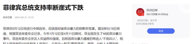 《菲律宾总统支持率断崖式下跌》——杭州日报