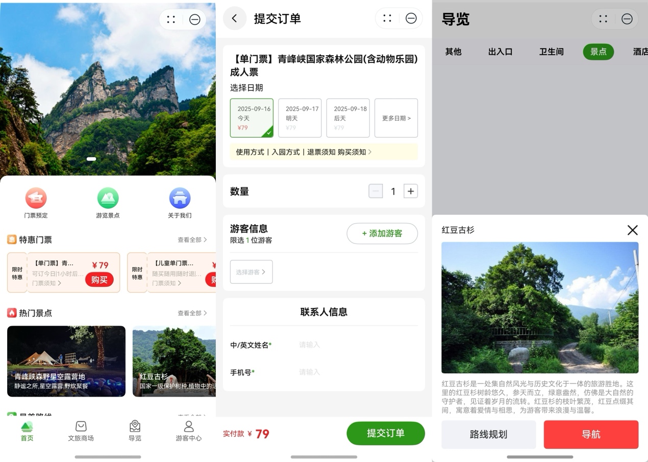 要是不想在景区门口排长队,那到目的地之前,记得先在各个景区的元服务里提前买好门票。现在青峰峡森林公园、南浔古镇这些热门景区,基本都支持元服务线上购票。不光不用排队,里面还有热门景点推荐和导览功能,帮你更好的安排景区内行程,了解景点背后的趣味故事。