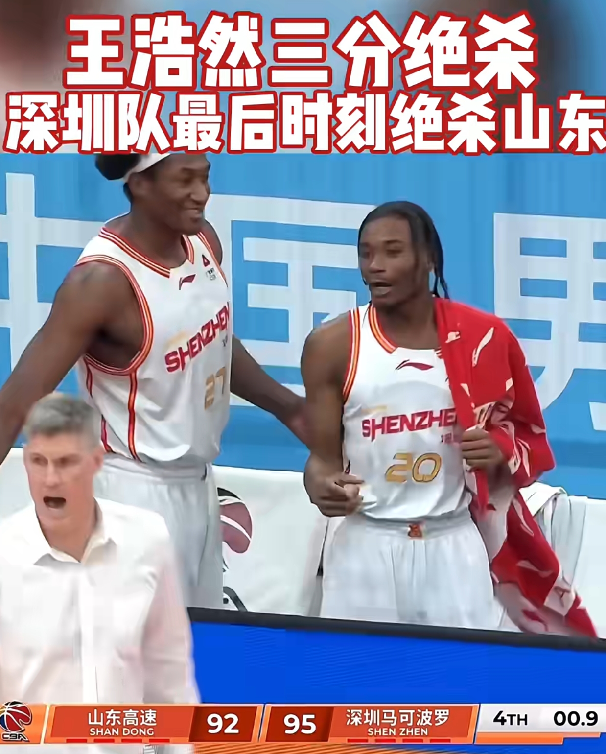 深圳这边,马里奇拿到了18分;史密斯有22分;贺希宁贡献了25分,还带着4次助攻;王浩然拿到15分,还有7个篮板,最后那俩三分那可真是起了大作用。