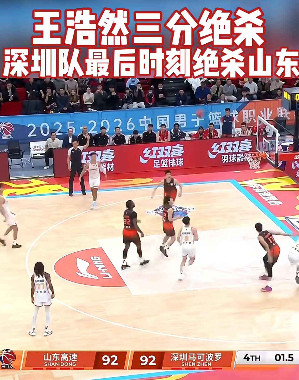 深圳和山东来场对决,深圳以101比99实现逆转,王浩然在最后28秒连续投中俩三分球,尤其是第二个球,那可是顶着对方的封堵硬给投进去的。
