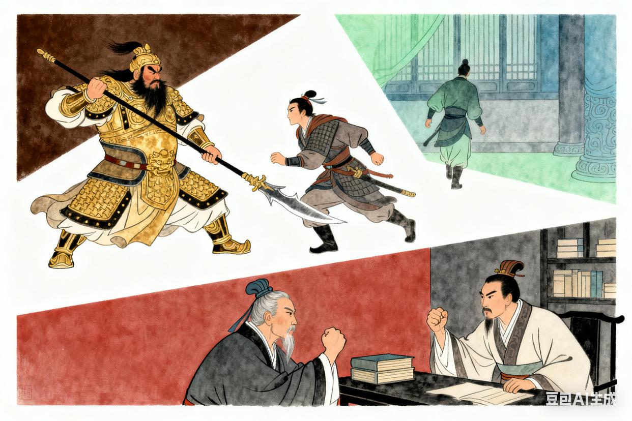 可关东联军没给他躲的机会,孙坚带着兵从长沙打过来,在阳人城跟董卓的部将华雄交战,华雄以为孙坚好欺负,结果被孙坚一刀砍了头 —— 后来《三国演义》里把这事安到关羽身上,其实真正杀华雄的,是孙坚。董卓听说华雄死了,赶紧派吕布去迎战,吕布也打不过孙坚,只好往后退。可关东联军里的人各有各的心思,袁绍想当盟主,袁术不想给孙坚发粮草,曹操带着几千人去追董卓,还被打得大败,最后联军闹得不欢而散,讨董的事就这么不了了之。