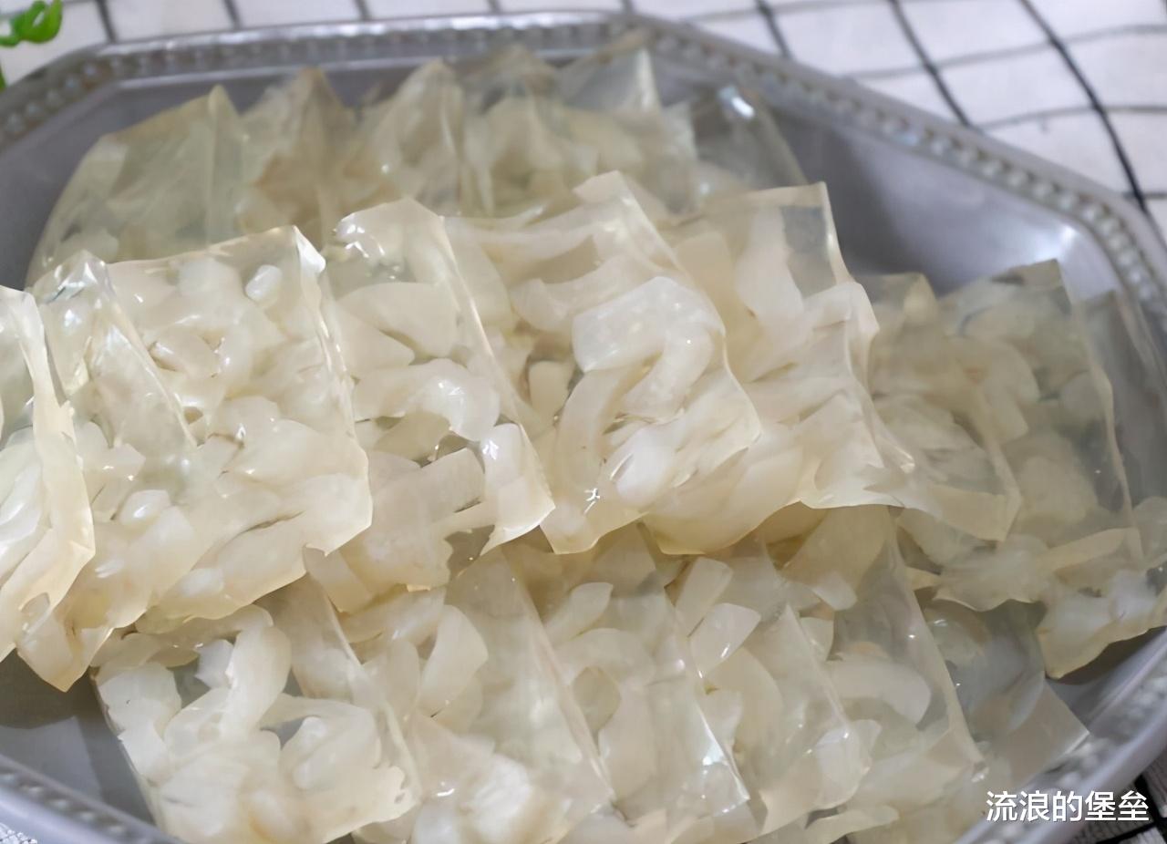 先说的就是猪皮,猪身上觉得最不好吃的部分,但其实猪皮最富含胶原蛋白,东北人把它做成了猪皮冻,像是果冻一样,弹滑的口感,里面的猪皮颗粒更是劲道有嚼劲!