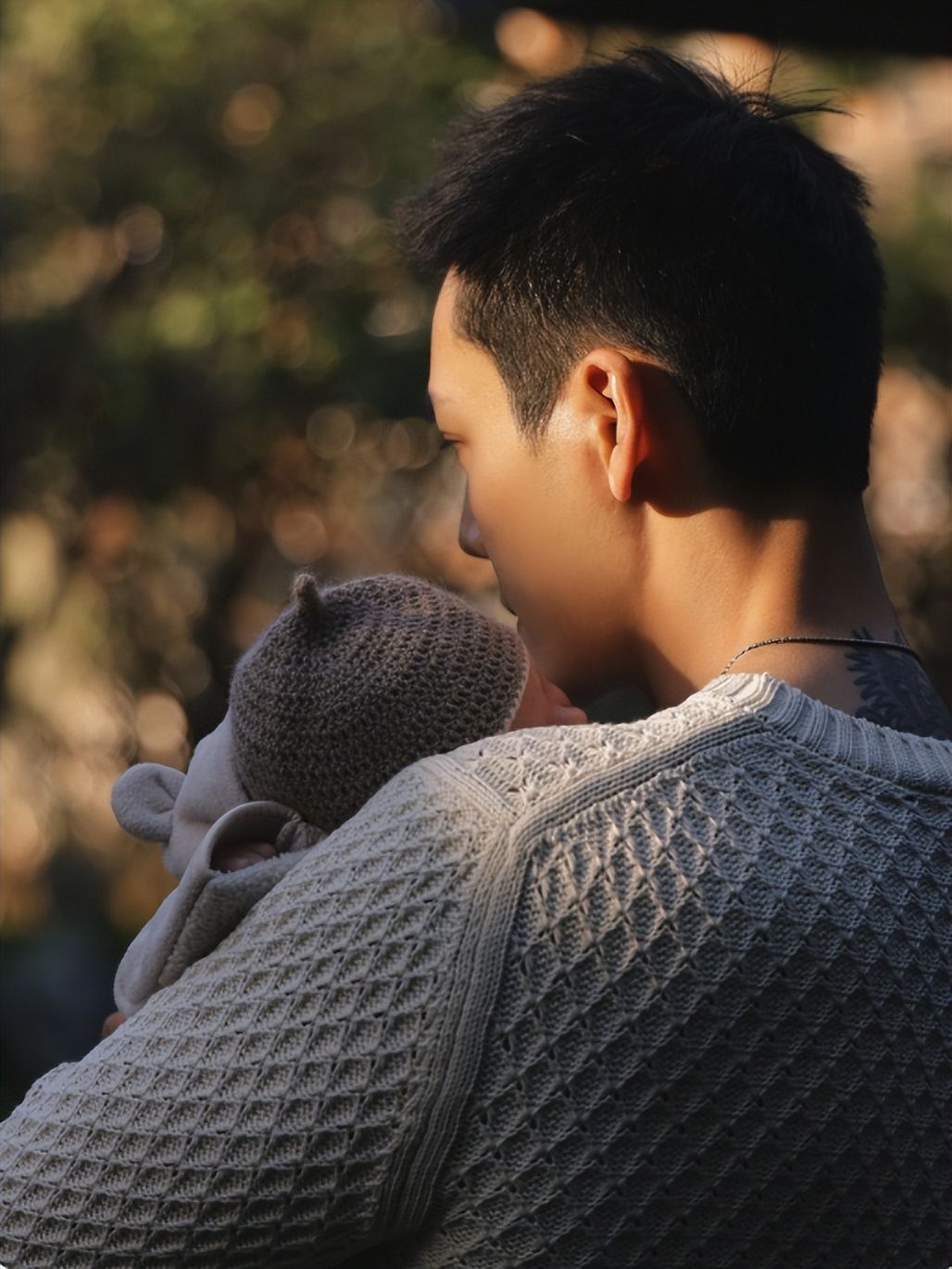 照片中小朋友脑袋毛茸茸的,看起来很可爱,这对新手父母也是激动的不行,从动作到眼神都能看出他们的喜爱和小心翼翼。