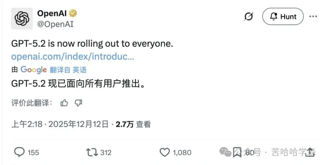 OpenAI 也说了,GPT-5.2 只是这一轮升级的一部分,后面还会继续优化,比如减少莫名其妙的拒答、缩短响应延迟。至于 GPT-5.1,付费用户还能再用三个月,当作老版本保留。