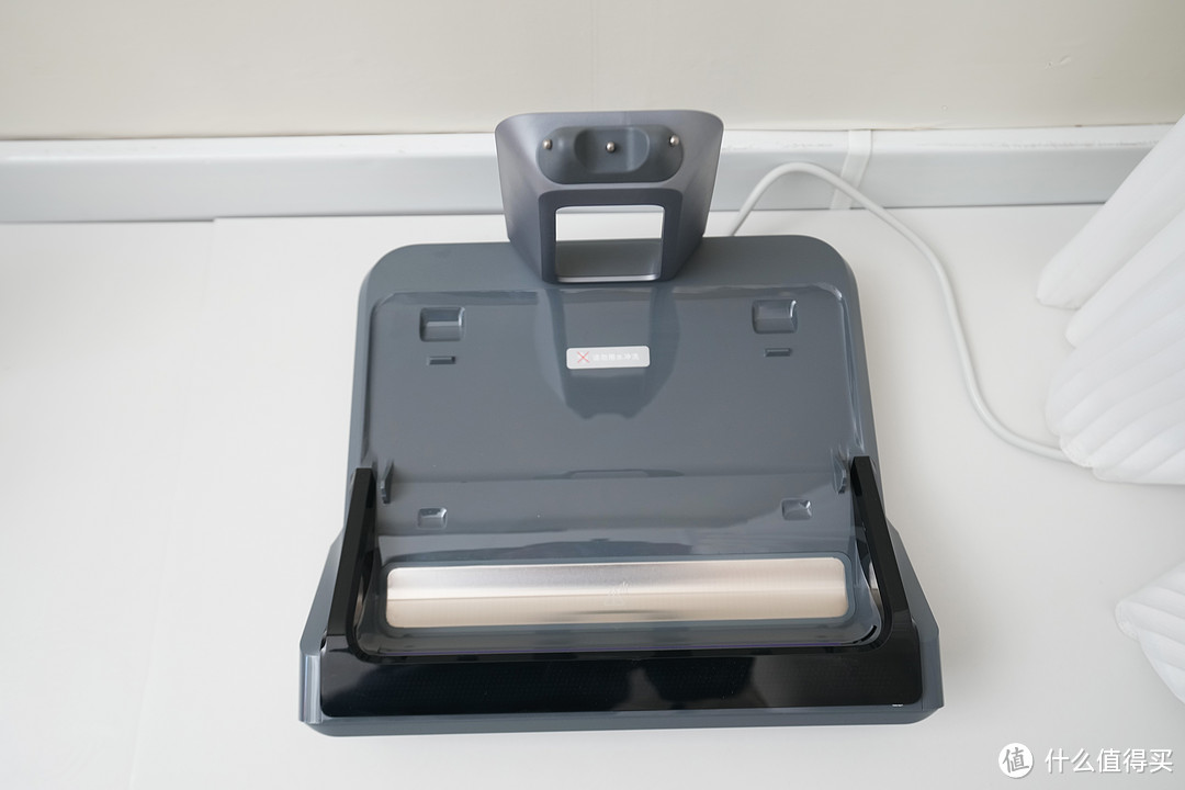 首先我们先来看看云鲸S2 Island光辉版的熨烫技术。它开创性地使用了基站和机身机身和基站双熨干条,协同运作,给滚轮熨烫服帖。