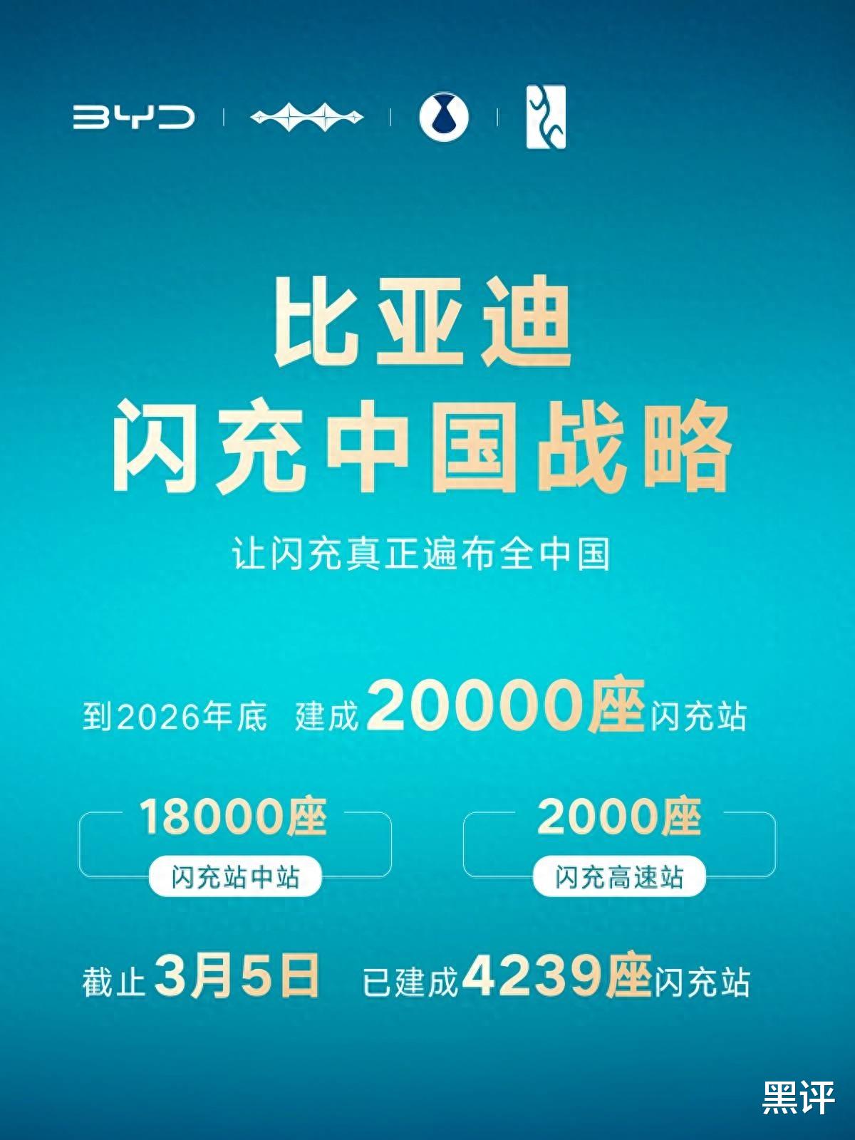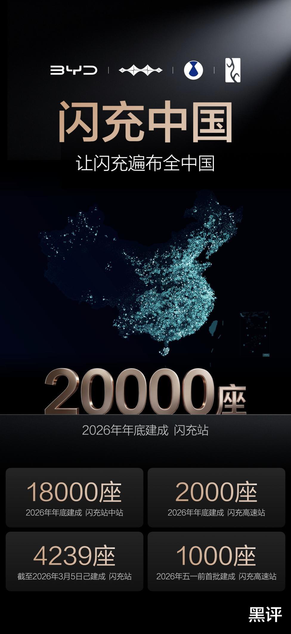 比亚迪同时公布 “闪充中国” 战略,计划在全国大规模建设闪充站,预计到年底建成 20000 座。其中 18000 座 “闪充站中站” 覆盖城区 90% 区域 5 公里范围,实现一二线城市 3 公里内、三四线城市 5 公里内、五六线城市 6 公里内有闪充站;2000 座 “闪充高速站” 覆盖近三分之一高速公路服务区,每隔 100 多公里一座,今年五一前首批建成 1000 座 “闪充高速站”,缓解用户出行找桩难、排队长的问题。