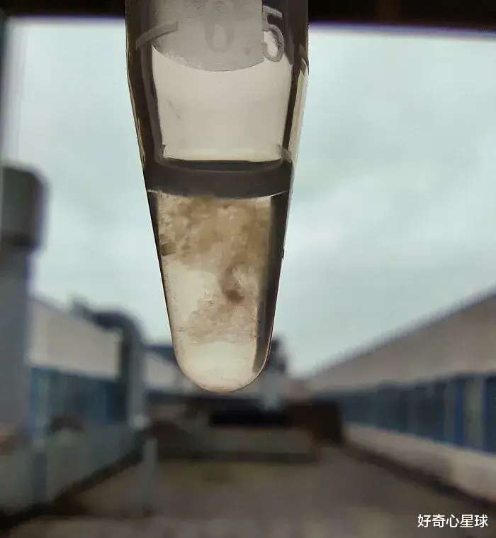 这个瓶子中沉淀的 DNA 链,其中包含约 3 万亿个 DNA 分子。