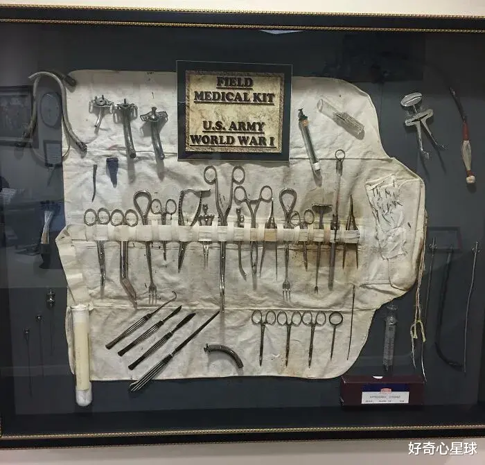 二战时期,医生办公室墙上挂着一个真正的一战医疗包。