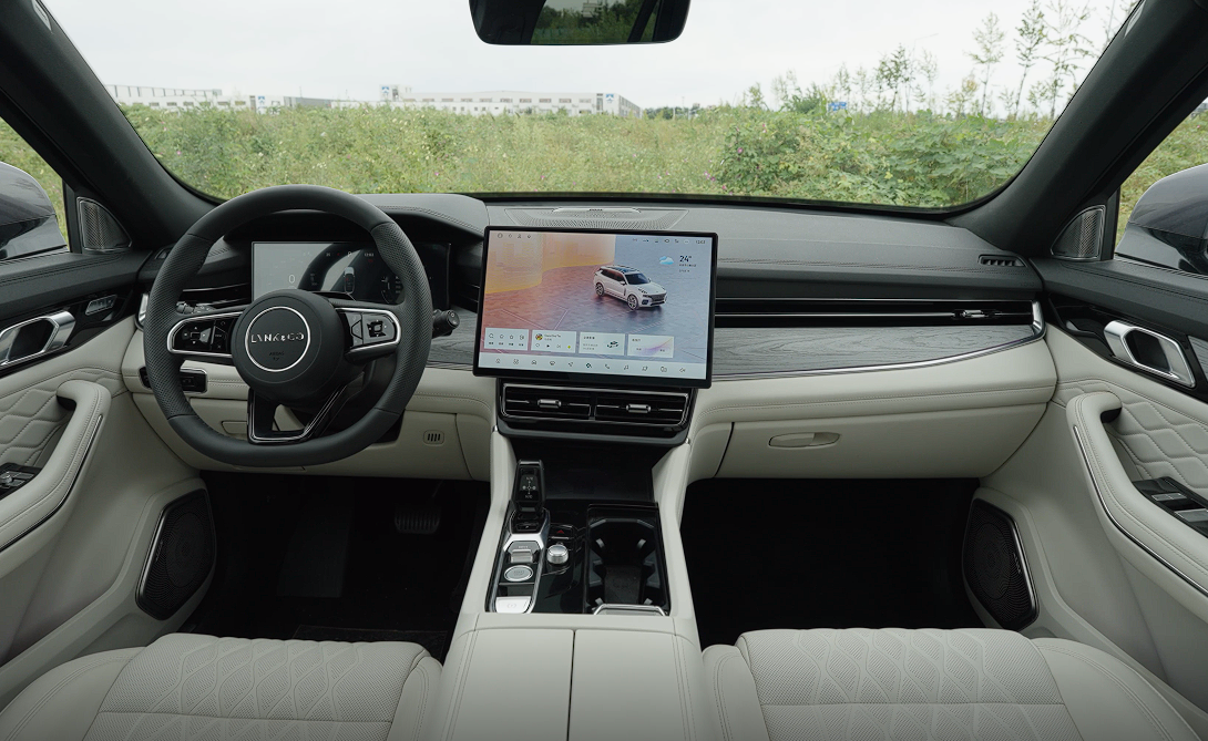 2026款领克09四驱探索版新增的“暗夜紫”车漆,为其超过5米的车身赋予了更深沉的质感。配合20英寸光晖轮毂,车辆在光线下的视觉效果更为立体。同时新增的“日光米”内饰配色,配合木纹饰板与奢享缝线,旨在营造一种明亮且温馨的车内氛围。