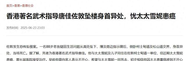 根据多家港媒的报道,6月23日下午5点左右,一名老人从香港的一处高楼坠亡。