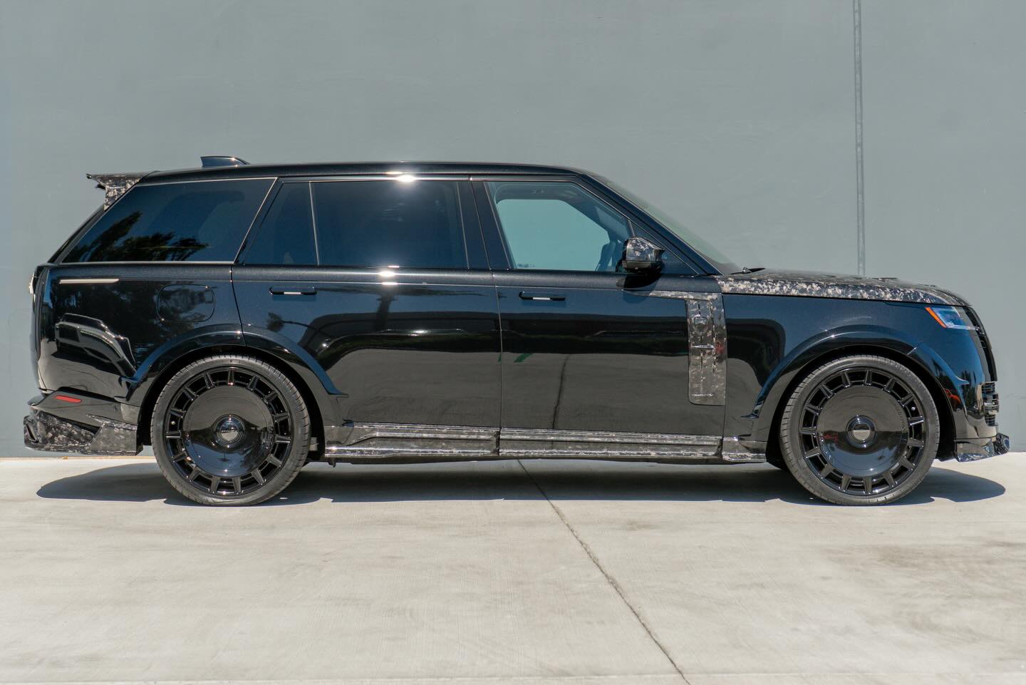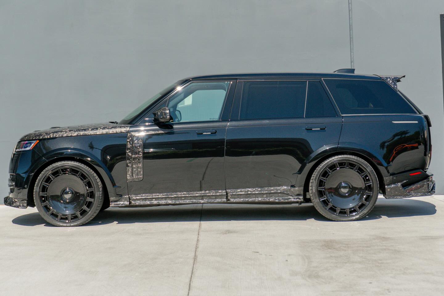 Refined by Mansory with a full widebody carbon fibre programme, including a forged carbon hood, Mansory front grille, signature forged wheels, carbon mirror caps, redesigned front bumper with integrated daytime running lights, and a rear diffuser paired with a sport exhaust system. Subtle details like the roof spoiler and illuminated Mansory logos complete the transformation, giving this Range Rover a far more aggressive presence while keeping the luxury character intact.Based on Range Rover LWB.