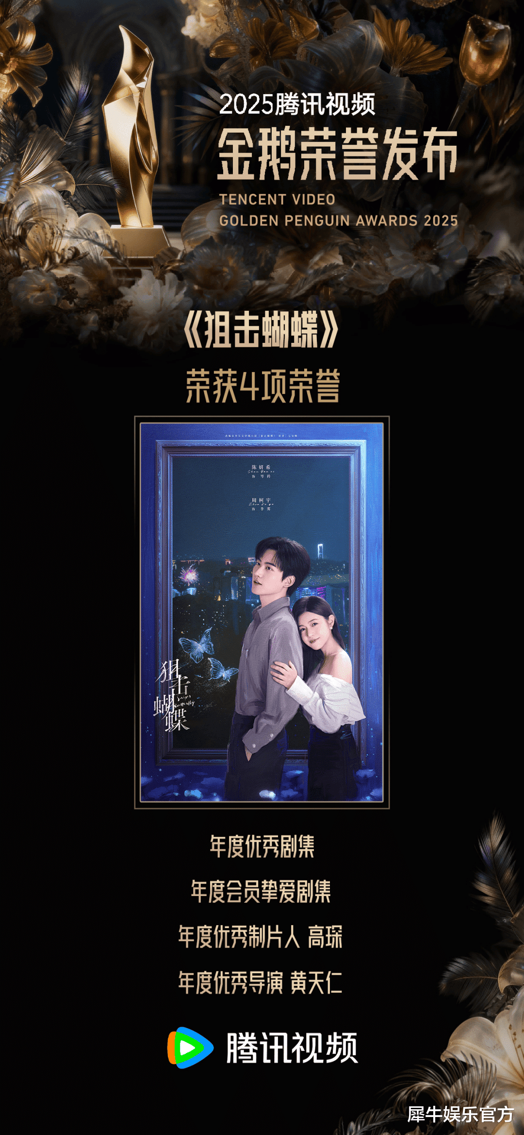 而就在刚刚结束的2025腾讯视频金鹅荣誉发布中,该剧还一举拿下了“年度优秀剧集”“年度会员挚爱剧集”“年度优秀制片人”“年度优秀导演” 四项大奖。