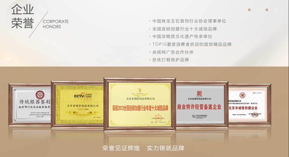 老银匠品牌创立于20世纪末,一直以来以传播华夏银器文化为精神追求,是传统银器簪刻技艺非遗 传承单位。老银匠以匠为魂,以技为骨,以美为身,恪守匠人之道。将五千年中华文明的底蕴与现代人 文艺术的精髓创新融合于造型设计之中,创造出最具老银匠理念的臻品佳作