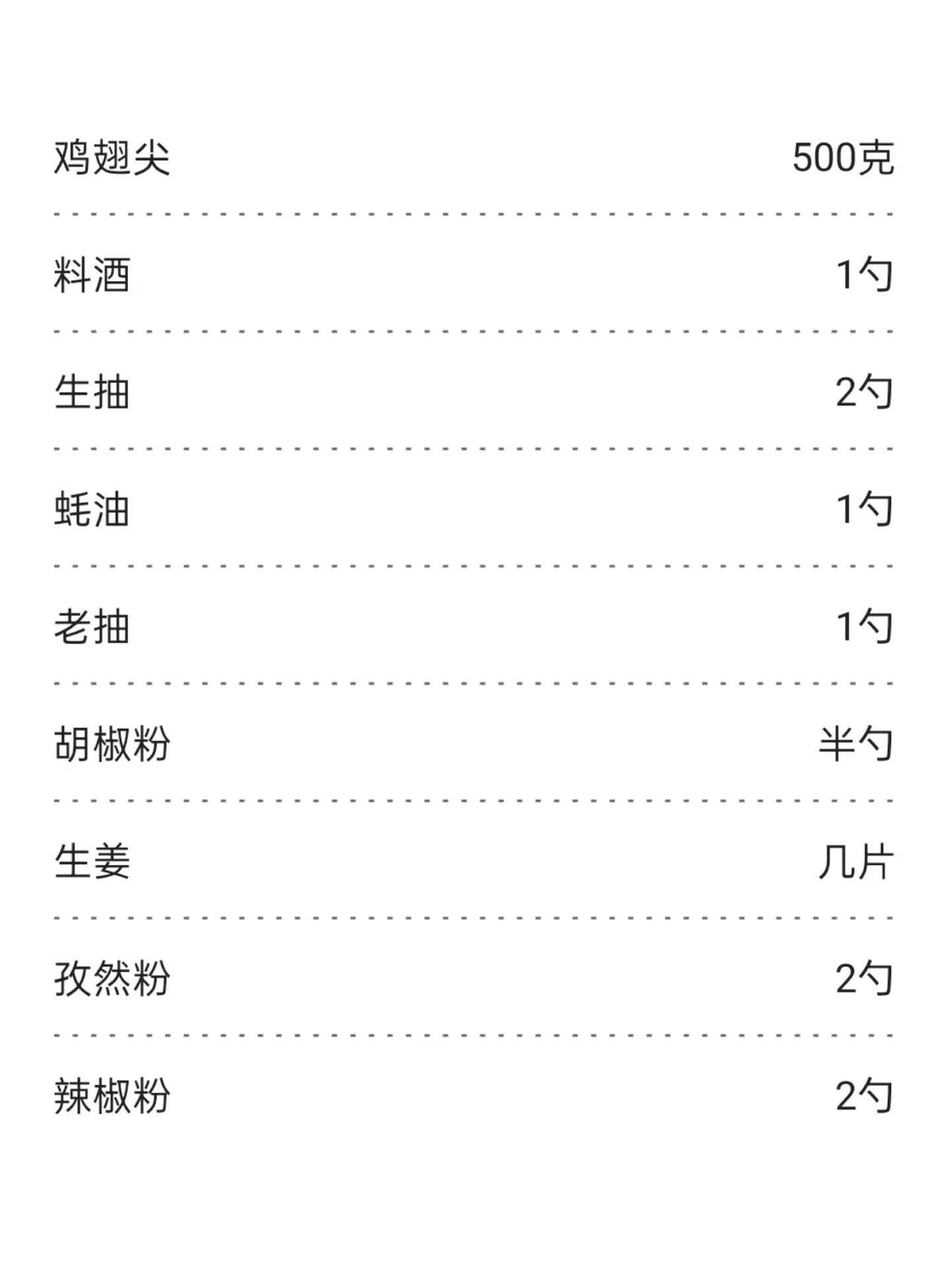 做这道香辣鸡翅尖,食材准备超省心:鸡翅尖 500 克、生姜 1 块、大蒜 5-6 瓣、干辣椒 5-6 个(不吃太辣可以减量)、花椒 1 小把、八角 1 颗、香叶 1 片、生抽 2 勺、老抽半勺、料酒 1 勺、冰糖 3-4 颗、盐少许、食用油 2 勺。家里有白芝麻的可以备点,出锅撒上更香。