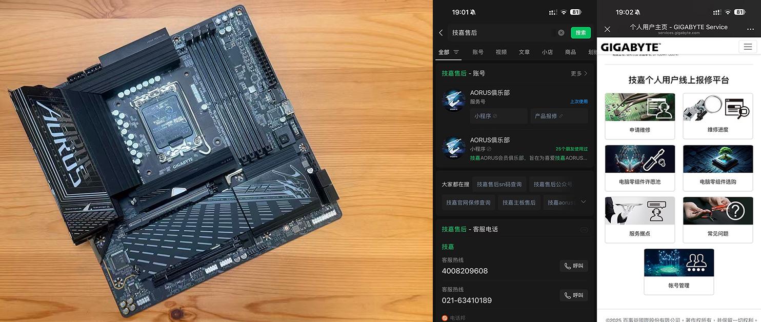 我前两天装机手潮,不小心好好的一块主板摔到了地上。粗略的检查了一下,虽然没有发现什么毛病,但是主机上电之后会自动重启且CPU的灯会报错。由于到手的是一块二手的板子,扯皮是不现实的,抱着试一试的心态,在小程序上申请了技嘉的帮修服务,没想到不到一周的时间,主板修好,并且快递回来了。