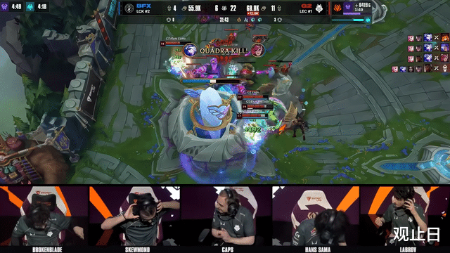 第三局:G2下路一波完美越塔后,BFX彻底乱套。