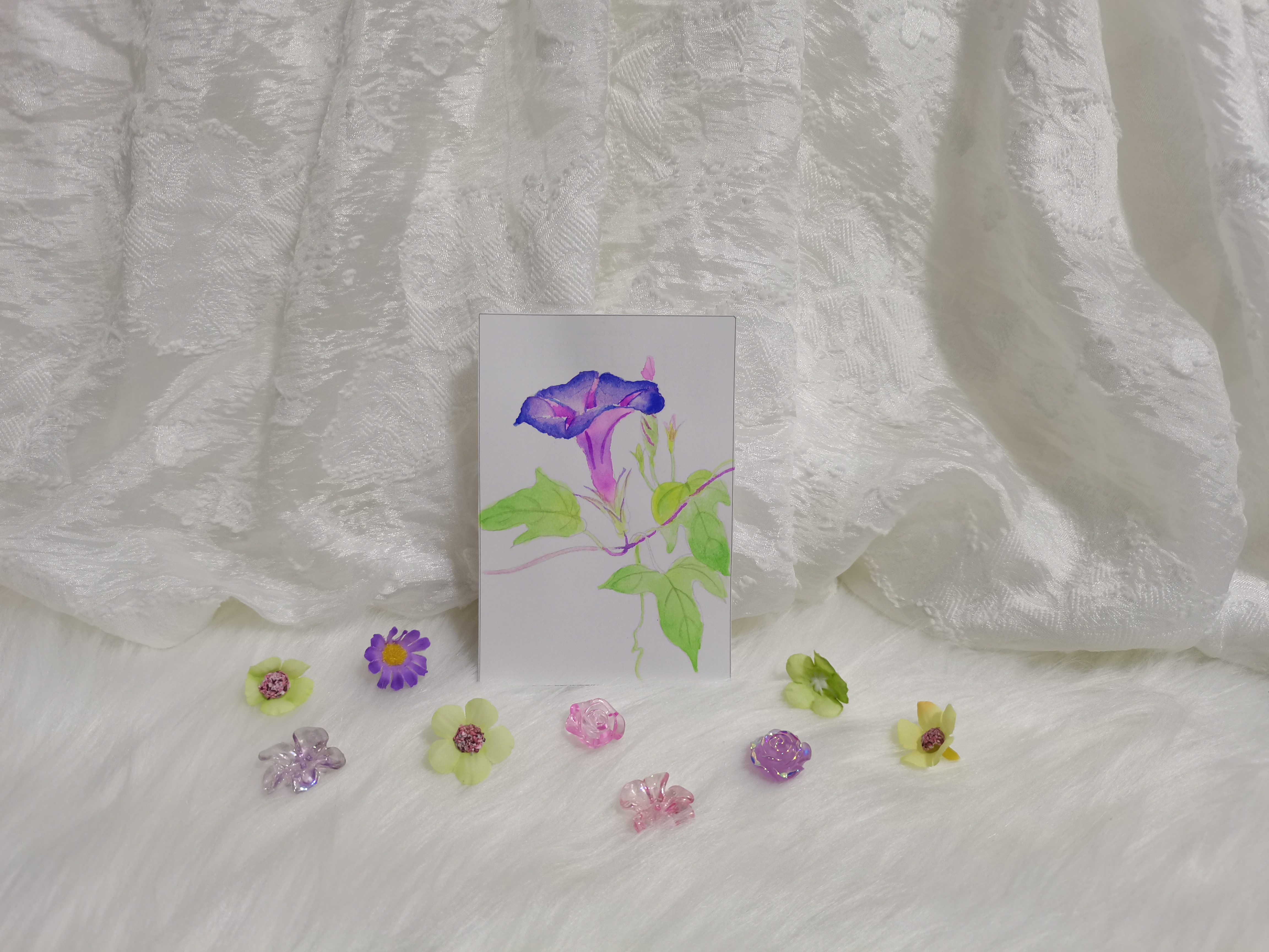 朝颜花开着,播放无声的天籁。群青色,青莲色,晴天的旦,晴天的昧。