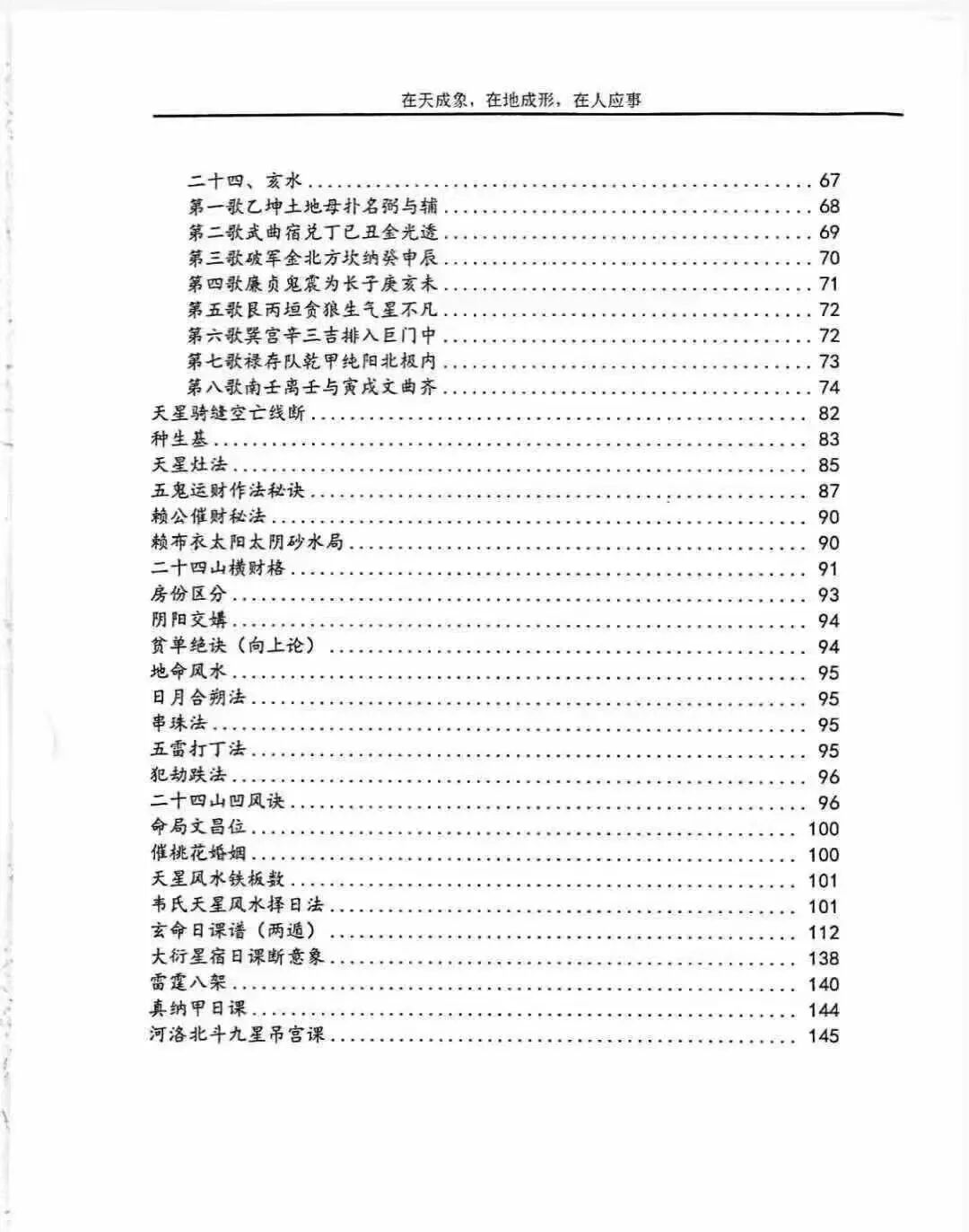 除此之外,书中还涵盖星体扶抑之法、二十八星宿能量解读、天星风水二十四山特征,以及消砂原理、二十四山砂法断事、天星水法、翻卦九星水临位应验等核心内容,详解壬水、子水、癸水等各类水法的具体影响,同时收录种生基、五鬼运财、赖布衣太阳太阴砂水局、天星择日法等实用秘法,补充河洛北斗九星吊宫课、直纳甲日课等实操技法,兼顾专业性与实用性。需要特别说明的是,书中内容并非全部准确无误,学习者需辨别真伪,结合其他风水方法进行综合判断。书中内容严谨、流传有序,既遵循韦氏天星风水的传承传统,又贴合民间风水实操场景,可供风水从业者研习应用,也能让天星爱好者系统了解韦氏天星风水体系。