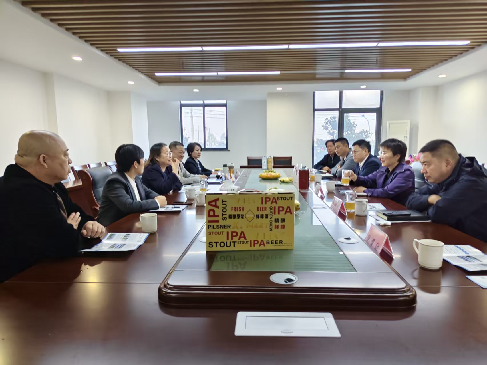 11月3日,在如皋经济技术开发区领导王建云、苏伯全的陪同下,黄丽娟与上海金埂企业管理有限公司董事长吴田平一行,走进南通水明楼酒业有限公司(江苏优谷捷康食品有限公司),与董事长夏泽华深入交流。双方深入讨论联合开发一款“如皋专属草本精酿啤酒”。这款酒将精选如皋本地药食同源草本原料,融入犀姆婷的酿造智慧,把长寿乡的生态馈赠和东方草本的温润口感,封存在每一瓶酒中。