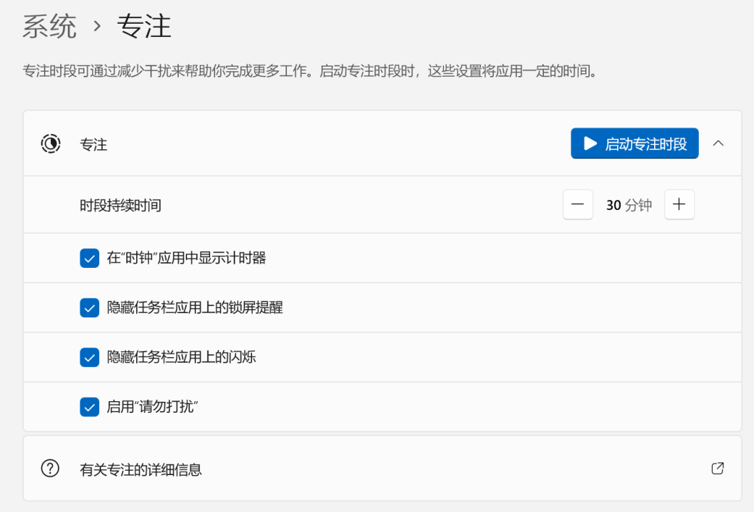 工作或学习时,最怕的就是不断弹出的通知——邮件、社交媒体、软件更新……这些干扰会不断打断你的思路。专注助手能帮你夺回专注力。开启后,系统会暂时屏蔽掉大部分或所有通知,让你能沉浸在当前的任务中。