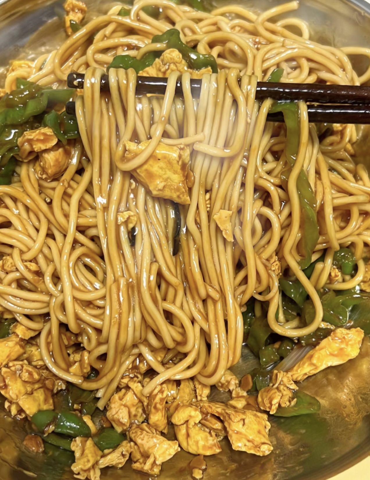 当金黄的鸡蛋裹着翠绿的青椒,缠绕在雪白的面条上,这碗看似普通的拌面瞬间有了灵魂。第一口是酱香的浓郁,第二口是青椒的清甜,第三口……哎呀,盘子怎么空了?连挑食的小朋友都会抢着添饭,减肥的闺蜜会破功吃两碗,异地恋的情侣甚至会通过视频云干饭!