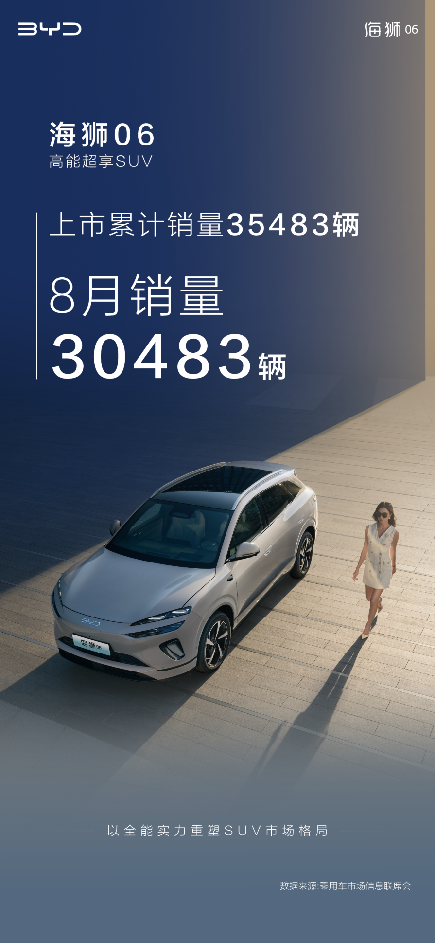 9月1日,比亚迪海洋网再传捷报。海洋网8月份销量189,340辆,同比再度实现增长,重磅车型——“高能超享SUV”海狮06表现亮眼,得益于在颜值、安全、舒适、驾控以及智能等方面的全能实力,其首个销售整月的销量达到30,483辆,自7月底上市以来,累计销量35,483辆,以新一代全能神车的姿态,成为海洋网的又一现象级爆款。