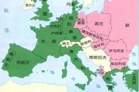 12,冷战时的欧洲,北约和苏联的对峙,其中在东南欧还有有一个实力不错的社会主义国家南斯拉夫,奥地利和瑞士是中立国。