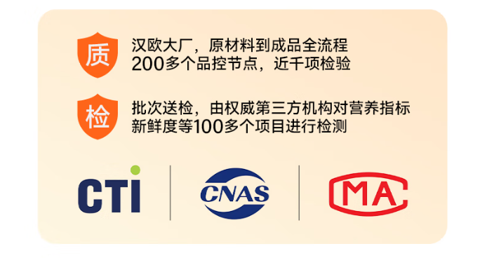 为了让品控更靠谱,希喂还在汉欧加设了两百多个质量监控点。24小时内冷链投料鲜鸡肉养殖到屠宰的记录、加工设备的清洗、加工时间及温度、灭菌流程、塑封全过程等等,只要是大家能想到的生产节点,全部都可查;成品还送到了华测检测机构做了全项检验,上市至今保持零召回记录。再加上品牌最新研发的Bak3分阶控温烘焙技术,三个温度渐进式轻度烘焙,既能让肉质风味更浓,又能保留更多的活性营养物质,实测这款猫粮蛋白质表观消化率高达95.82%,适口性测试初食率超95%,挑食主子也能被拿捏。