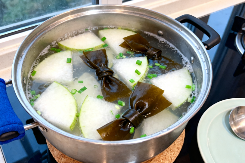 冬瓜海带汤:取冬瓜200克、海带50克,少油清炖。这款汤品利水消肿,有助于改善血液循环。晚餐食用不会增加肠胃负担。