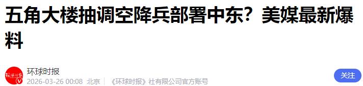 五角大楼抽调空降兵部署中东?美媒最新爆料