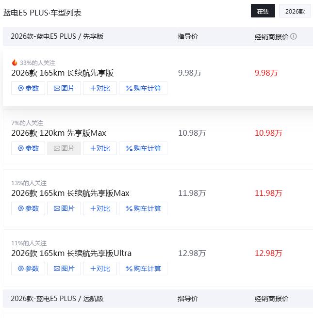 近期想选插混 SUV 的朋友,估计都刷到第三代蓝电E5 PLUS 了。这款车 11 月 1 号刚开启预售,一共出了两个版本:230km 长续航版 Ultra 和标准续航四驱性能版 Ultra,预售价都是 13.98 万。更划算的是现在有限时换新价,长续航版只要 11.98 万就能开回家。