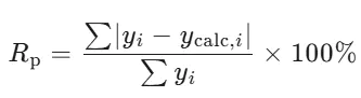 yi第i步的实测强度;ycalc,i第i步的计算强度。理想值通常比20-30%,但两者趋势应一致。若Rp显著低于DOI: 10.1007/s12613-020-2194-x