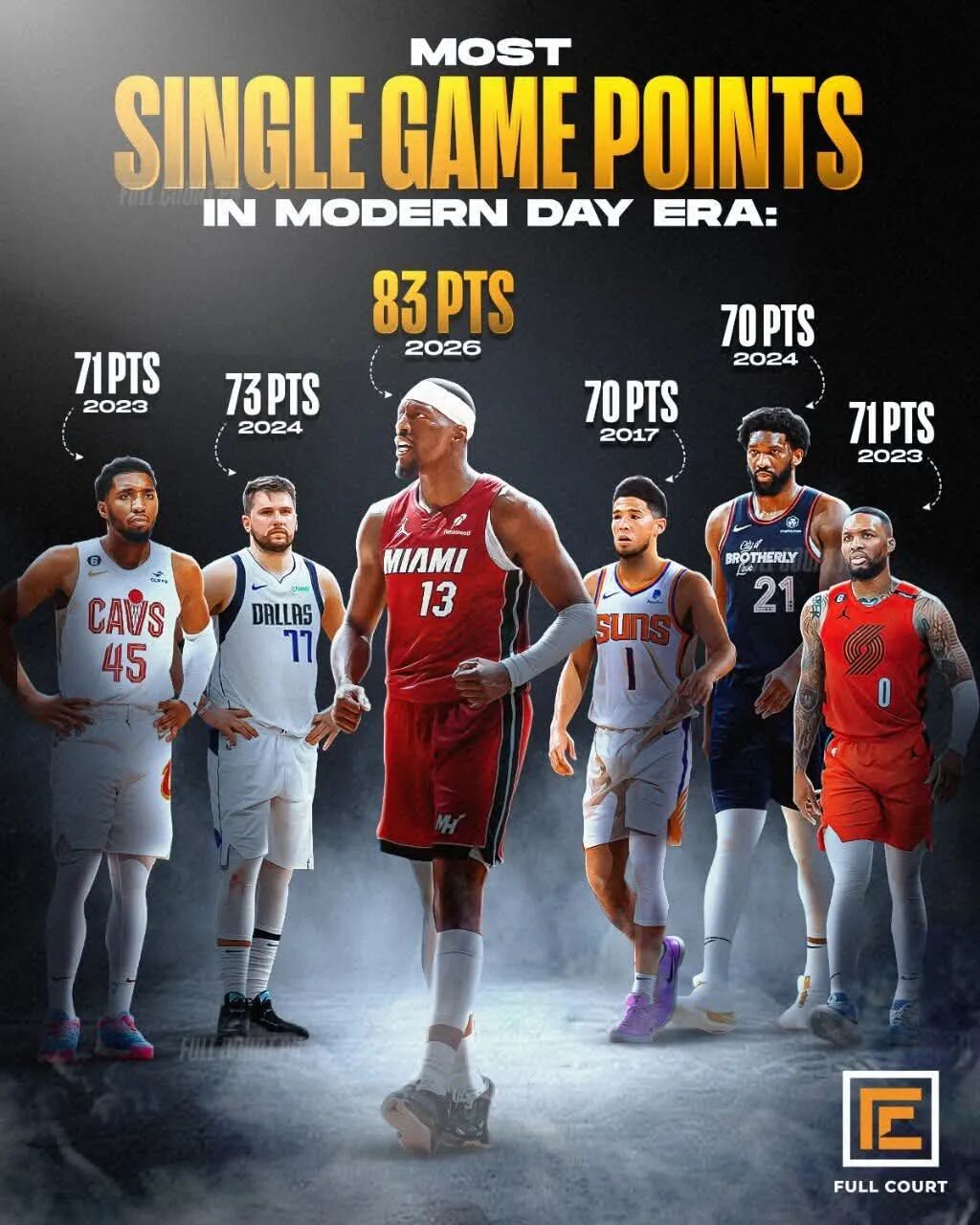这场比赛想必各位都有听说了,阿德巴约第一节单节31分,三节结束拿下60+,第四节用一种比较有争议的方式超越科比,然后创造了NBA历史单场第二高分纪录。