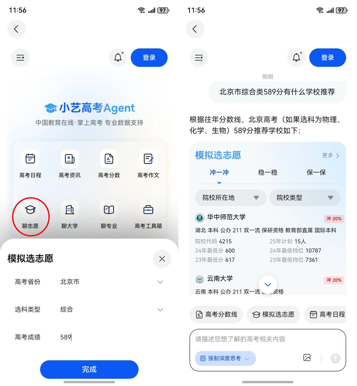 在小艺高考Agent的“高考工具箱”专题页面,聚合了志愿填报的关键信息:查大学(全国院校信息)、查专业(学啥、前景如何)、看历年分数线、一分一段表…而且,信源来自中国教育在线 · 掌上高考版块,做到了真正的权威可靠!