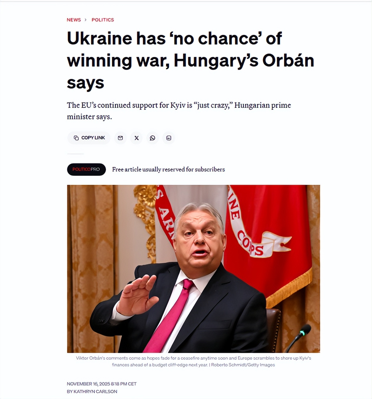与此同时,二五仔欧尔班再次声称乌克兰“没有机会”赢得战争,并认为欧盟的持续支持“简直是疯了”。