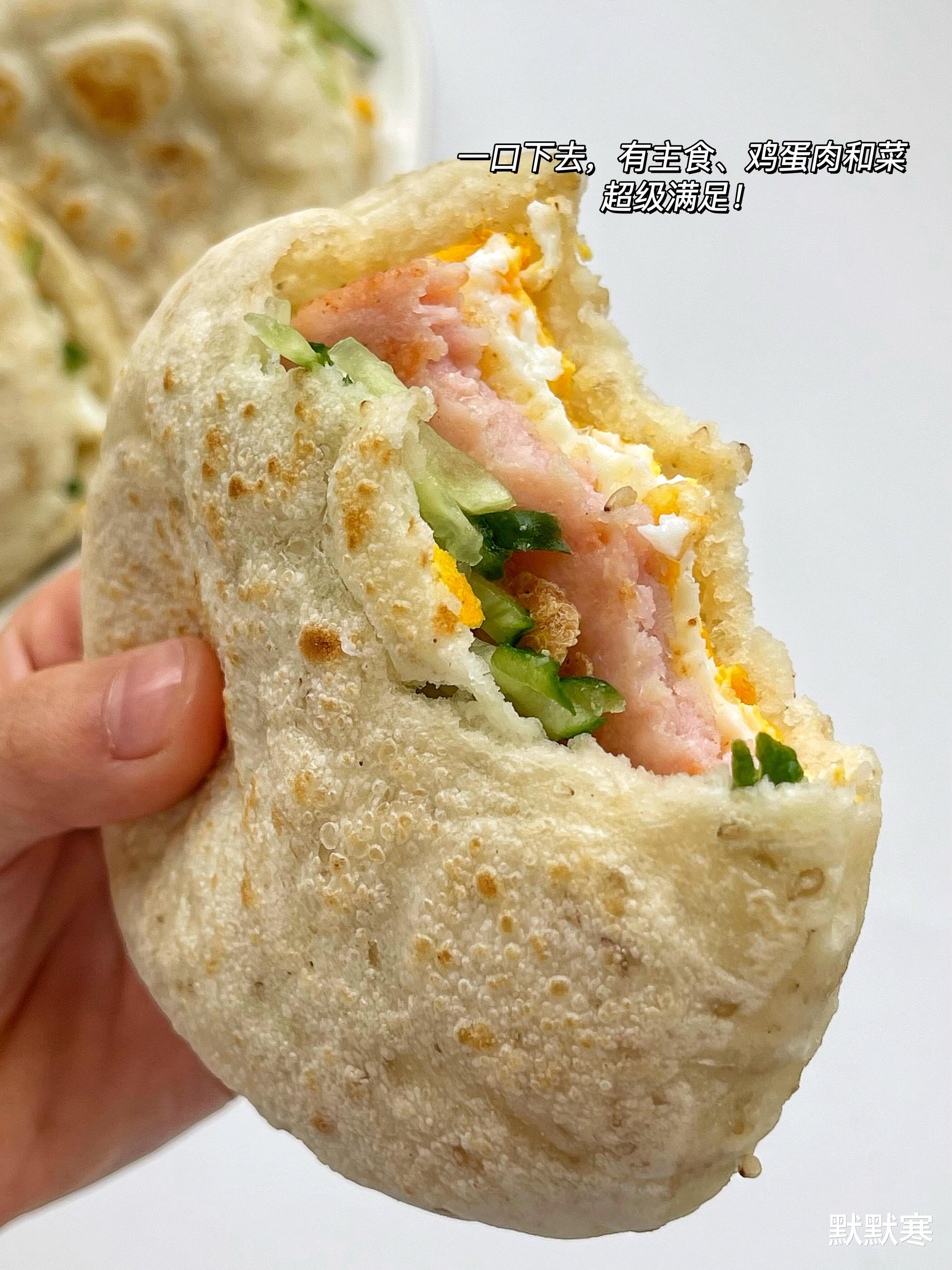加分项:包馅时随手抓点鸡蛋、午餐肉、生菜,营养直接拉满,堪称懒人版手抓饼!