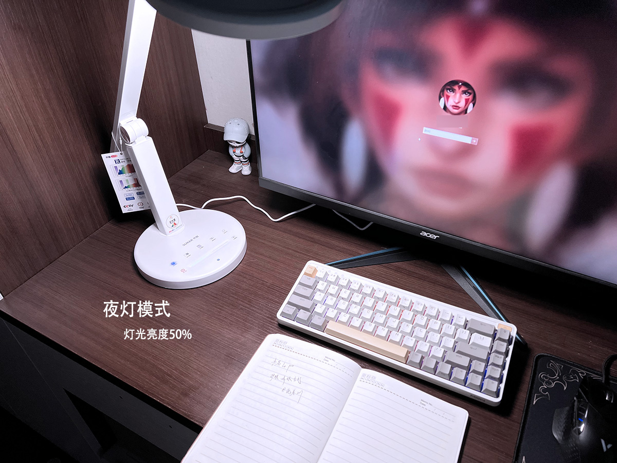 工作模式,灯光亮度为90%,使用电子设备时,电子屏幕看得清晰,工作、上网课都非常不错;