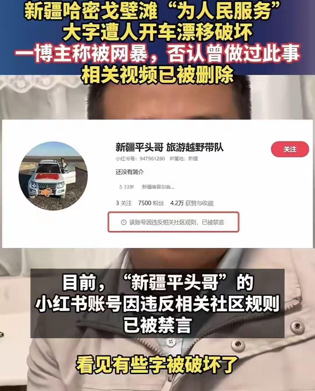不得不佩服网友的力量,有网友扒出了新疆“平头哥”就是破坏者之一,他在某社交平台账号的相关视频已被删除,并且被禁言。