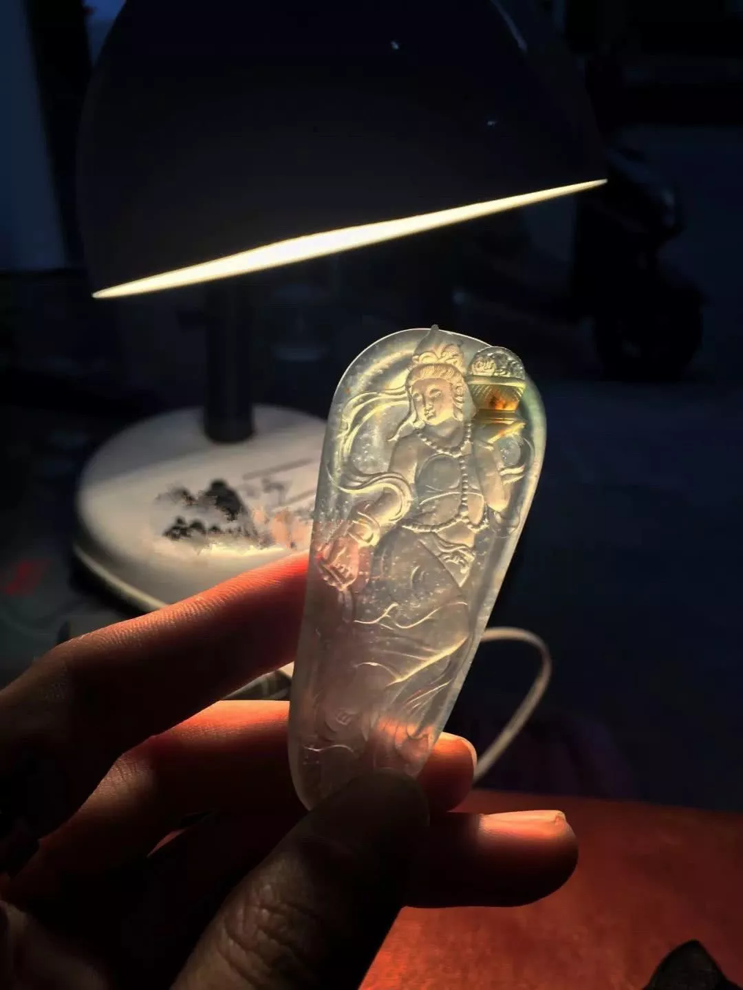 雪花棉给整体的感觉增添了韵味,大自然的鬼斧神工加上雕刻师傅巧夺天工的玉雕技术,真是惟妙惟肖啊,像这样级别种水料子非常的难得一见,极品了,观音是佛教中慈悲和智慧的象征,有求必应,降福世人,吉祥如意。