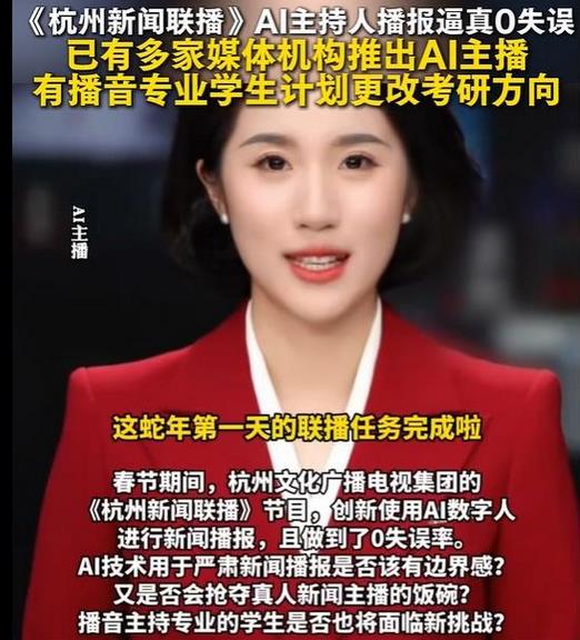 也就是在最近,一个消息传来引得大家震惊,春节期间《杭州新闻新闻联播》的主持人引起了人们的关注,并非是主持人出了什么幺蛾子,而是主持人竟然都是ai!