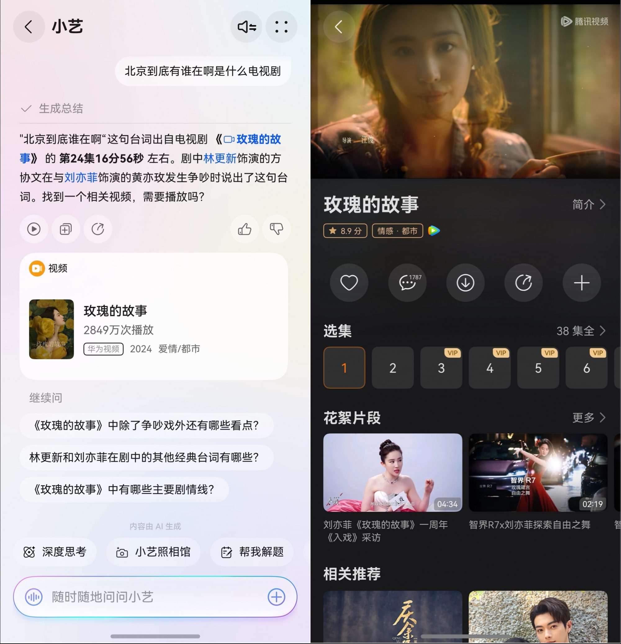 更让我惊喜的是,华为视频的AI影视全能搜功能,简直是追剧党的福音。有时候想看某部电影,但是想不起片名,只记得某句台词、某个角色甚至一段模糊的剧情,直接对小艺说一句,它就能秒懂我心意,精准找出片源,在华为视频里点开即播!再也不用因为片名就在嘴边却想不起来而错过好剧了,感觉像配备了一个随时为我效命的私人观影助理。没错,这才是豪华版假期的专属尊贵体验。