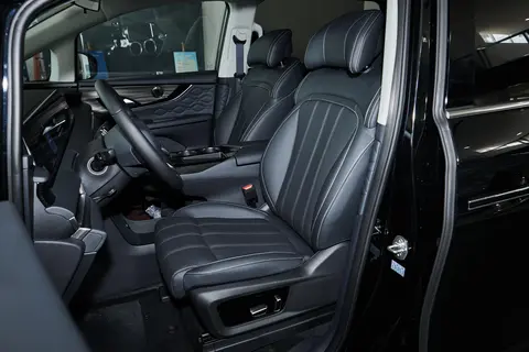 进入车内,星海V9越享系列的空间表现令人印象深刻。以身高180cm的体验者为例,前排座椅调整至舒适位置后,头部和腿部空间均非常充裕,头部约有一拳的余量,腿部空间则更为宽敞。后排空间同样友好,第二排独立座椅支持前后及左右移动,腿部空间约有两拳余量,靠背角度调节灵活,长时间乘坐也不会感到拘束。第三排座椅虽为三人座,但得益于车身尺寸优势,即便是成年人也能拥有较为宽松的坐姿,腿部空间约有一拳半,头部空间也未显得压抑。座椅配置方面,该车采用仿皮材质,触感细腻,且前排及第二排座椅均支持加热、通风及按摩功能,主驾驶座椅还具备记忆功能,极大提升了乘坐舒适性。此外,第二排小桌板的加入也为商务或家庭出行提供了额外的便利。