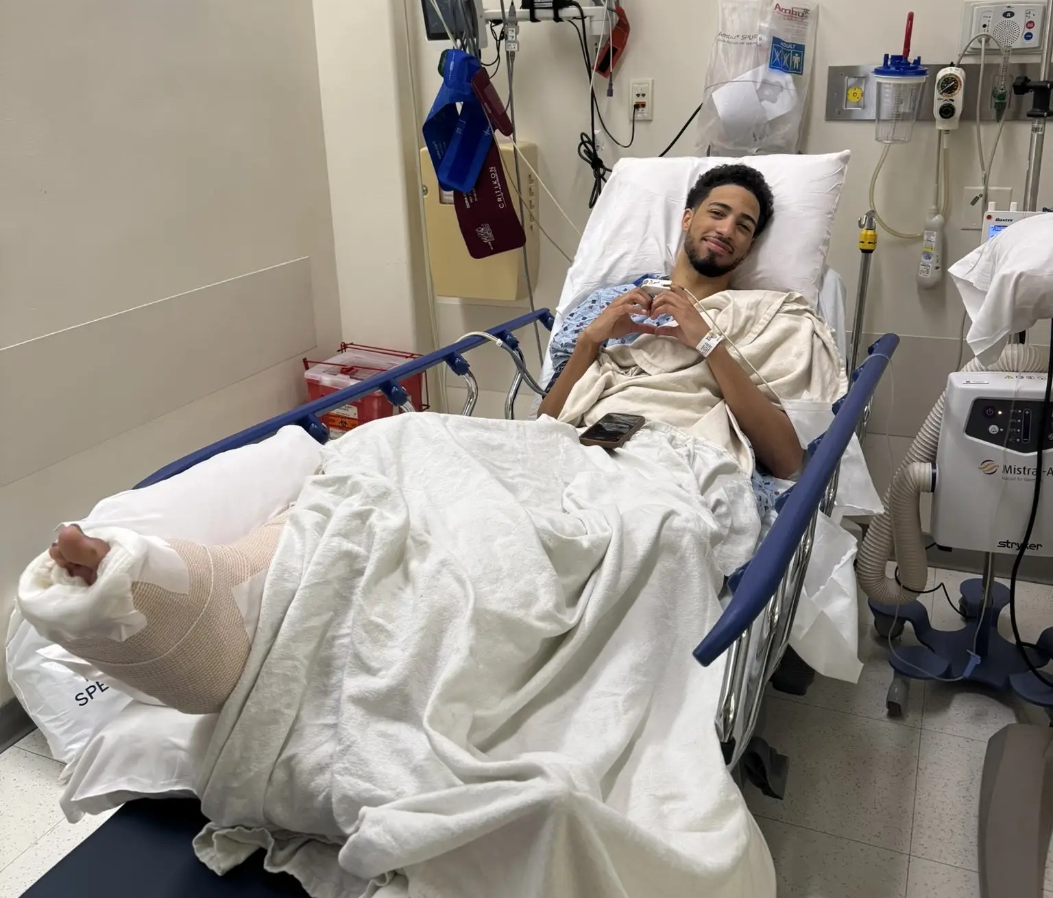 在万众瞩目的总决赛抢七大战,哈利伯顿仅仅出战7分钟就突然倒地受伤退场,季后赛多次上演魔法时刻,最终不能战斗到最后,没有比这更为残酷的事情,赛后哈利伯顿的伤情报告还没出炉,哈利伯顿的父亲接受采访时就表示,肯定是跟腱受伤,因为从视频回放过程中明显看到哈利伯顿右小腿抽动了一下,现在哈利伯顿已经接受了跟腱修复手术,肯定会缺席下赛季所有赛程。