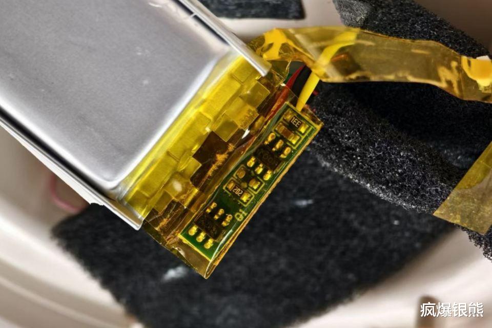 这里我先拆的左耳,拆开后内部构造如上图,黑色泡棉下面是左主板,下方是内置锂电池。